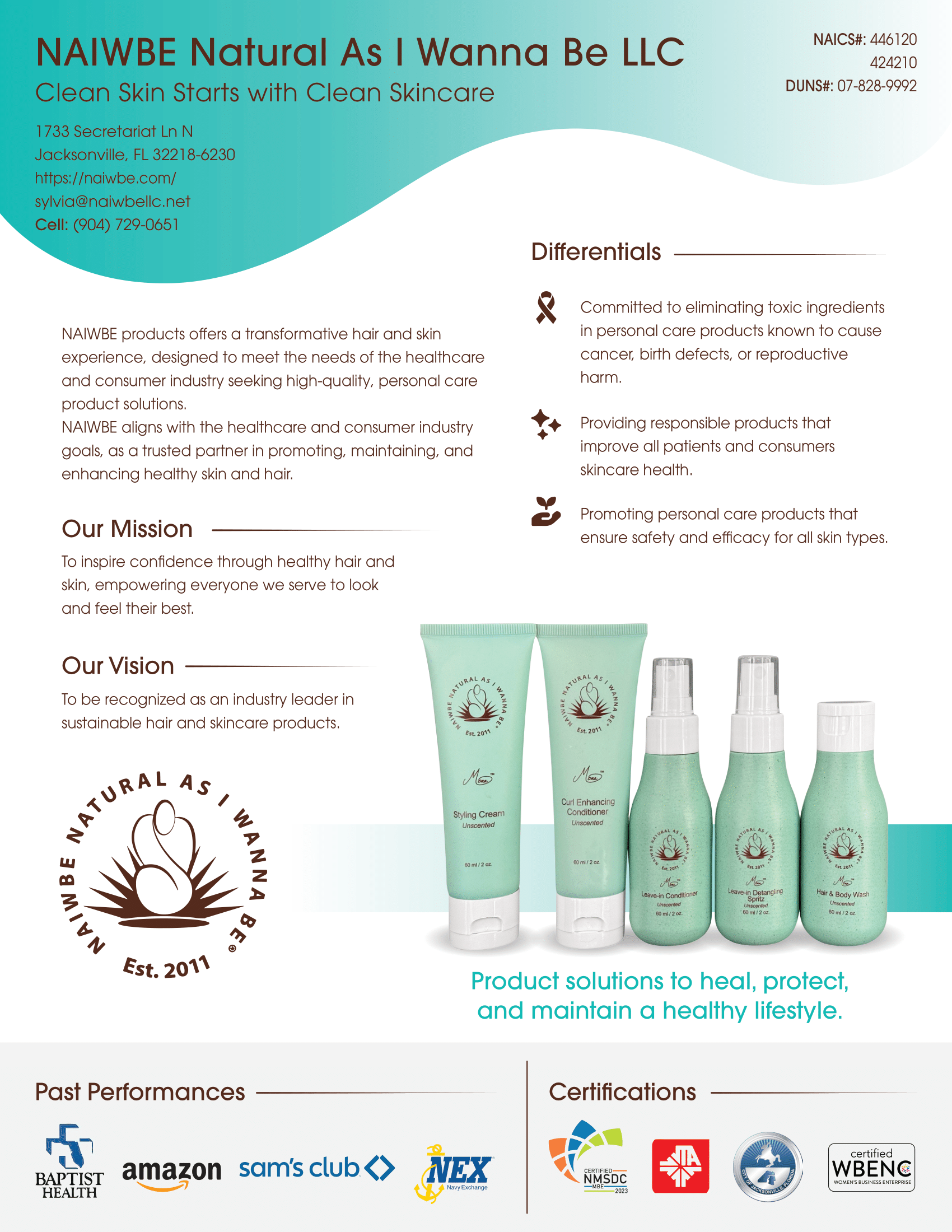 Our capabilities statement showcases our dedication to clean formulations and commitment to address the unique skincare needs of diverse skin tones with a passion for promoting healthy skin.
